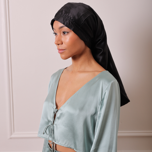 Un bonnet en soie de très grande qualité. Mais surtout une superbe tenue. Le Bonnet ne glisse pas et tient sur la tête toute la nuit sans bouger.