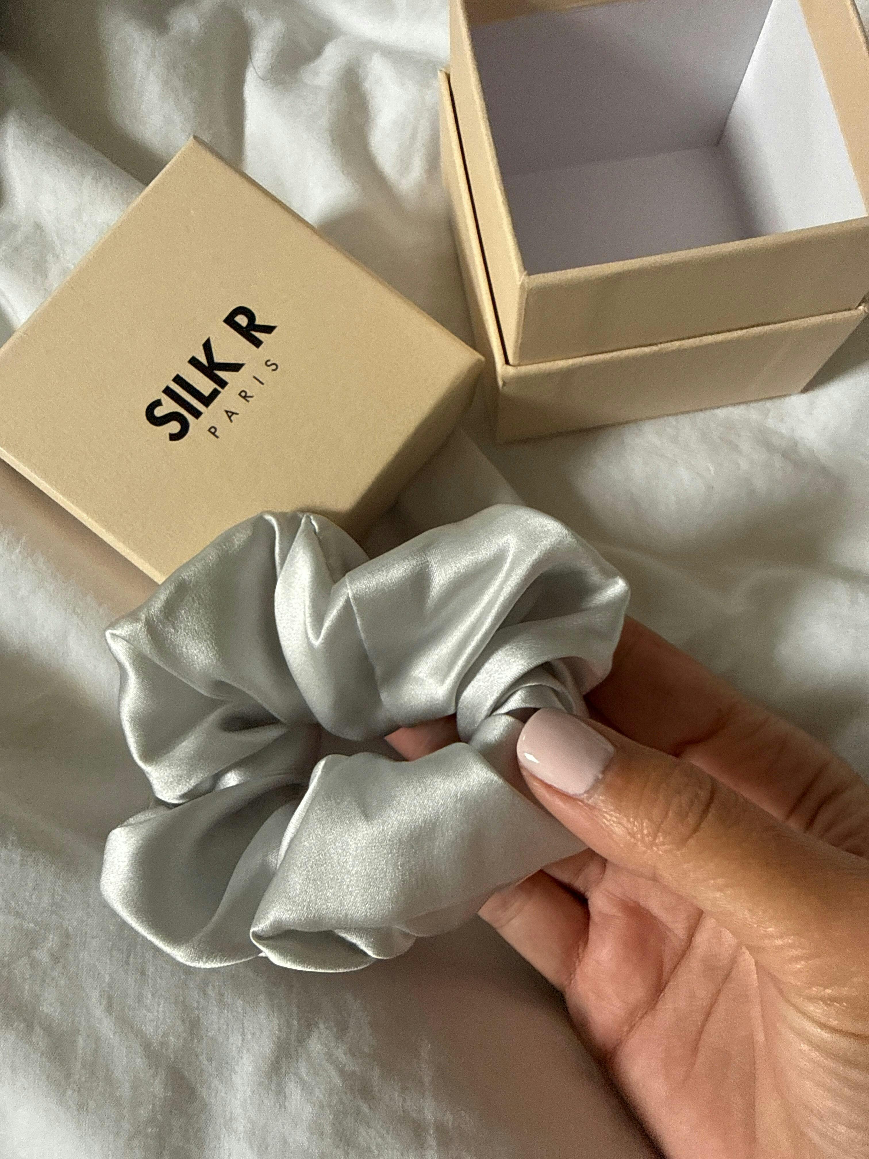 Add volume and a touch of elegance to your hairstyles with this XL silk scrunchie . Made of 100% natural mulberry silk , this scrunchie is designed for large hairstyles such as voluminous buns or high ponytails, while taking care of your hair. It adapts to all hair types (straight, curly, frizzy, fine, thick), ensuring a soft and comfortable hold.